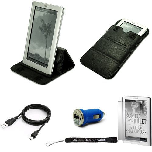 Black Leather Premium Durable Cover Sleeve Carrying Case can easily be converted to a stand for Sony PRS-950 Electronic Reader eReader Device ( PRS 950 PRS950 )(Compatible with all colors) + Indlues a 4-Inch Determination Hand Strap + Includes a Anti Glare Screen Protector + Includes a Travel USB Car Charger Kit + Includes a USB Data Sync Cable for your eReader (Mini USB Type) Review