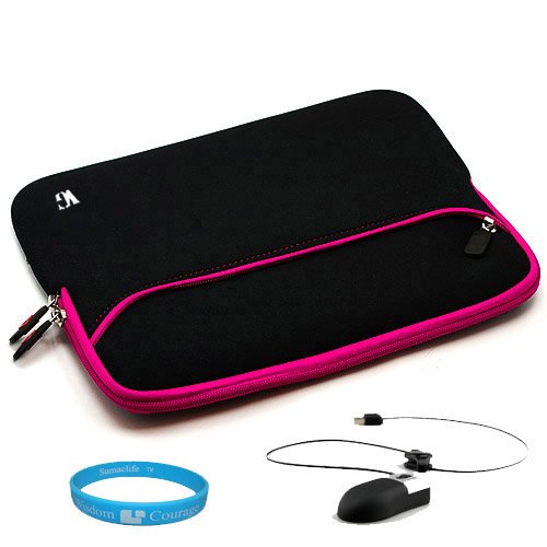 Durable Neoprene Sleeve with Exterior Accessory Pocket, (Black with Magenta Trim) for Dell Inspiron 15R 1570MRB 15.6-Inch Laptop + Naztech USB Mini Mouse with Retractable Cord for Laptop and Desktop + Bestpricecenter Mouse Pad Review