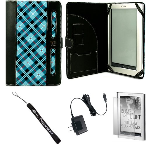 Blue Plaid Protective and Reinforced Portfolio Jacket Cover Carrying Case for Sony PRS-950 Electronic Reader eReader Device ( PRS 950 PRS950 )(Compatible with all colors) + Indlues a 4-Inch Determination Hand Strap + Includes a Anti Glare Screen Protector + Includes a Rapid Travel Home Wall Charger Review